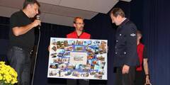 Die Feuerwehr aus Villingen-Schwenningen überreichte den Kameraden der Feuerwehrabteilung Oferdingen der Feuerwehr Reutlingen am Rande des Helferfestes ein Bild als Erinnerung an die gemeinsamen Einsatzstunden zur Beseitigung der Hagelschäden.