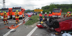 Durch den Anstoß wurde der Seat Ibiza nach rechts von der Fahrbahn abgewiesen und kam abseits der Fahrbahn zum Stehen. Sowohl die Fahrerin als auch der 9-jährige Beifahrer wurden schwer verletzt. Der in Richtung Stuttgart fahrende Toyota geriet nach dem Anstoß nach links in den Gegenverkehr und kollidierte frontal mit einem entgegenkommenden Mercedes und rutschte anschließend auf dem Dach in die Ausfahrspur, wo er zum Unfallendstand kam. Die im Toyota befindlichen beiden Personen im Alter von 46 und 22 Jahren wurden in ihrem Auto eingeklemmt. Sie mussten von der Feuerwehr mit zwei hydraulischen Rettungssätzen befreit werden. Beide Frauen wurden mit lebensgefährlichen Verletzungen in umliegende Kliniken gebracht. Drei der vier Insassen der Mercedes C-Klasse wurden leicht verletzt, eine weitere 62-jährige Mitfahrerin, die den Sicherheitsgurt nicht angelegt hatte, prallte von hinten massiv gegen den Beifahrersitz und erlitt ebenfalls schwere Verletzungen.