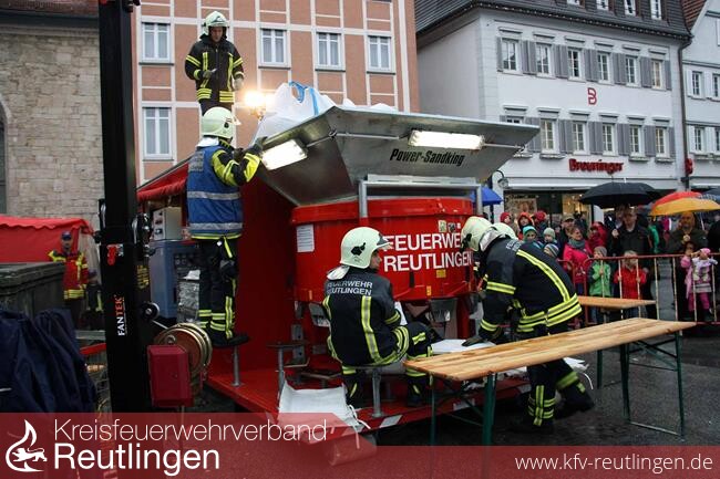 Gut besucht waren die Veranstaltungsbereiche der Feuerwehr. Während die Werkfeuerwehr Bosch und die Gefahrstoffeinheit der Feuerwehr Reutlingen ihre Leistungsfähigkeit bei der Ölschadensbekämpfung und Gefahrstoffbeseitigung zeigen konnten, präsentierte die Abteilung Reicheneck Hochwasserabwehrmaßnahmen mit einfachsten Mitteln beim Braun Möbel-Center im Industriegebiet Betzingen.