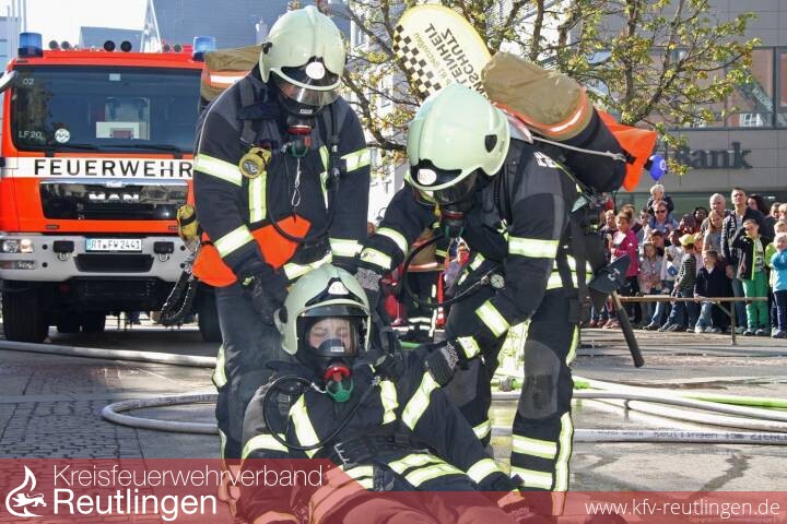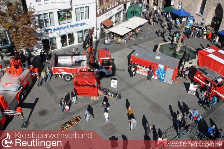 Am vergangenen Sonntag waren bei schönstem Herbstwetter Tausende von Besuchern zum Sicherheitstag mit verkaufsoffenem Sonntag in die Reutlinger Innenstadt gekommen. Unter den Reutlinger Hilfsorganisationen war auch die Feuerwehr Reutlingen mit den Abteilungen Berufsfeuerwehr, Freiwillige Feuerwehr (FF) Betzingen, FF Gönningen, FF Sickenhausen sowie der Höhenrettungsgruppe, der Tauchergruppe und der Kinder- und Jugendfeuerwehr mit dabei, um einmal mehr ihre Vielseitigkeit und Schlagkräftigkeit zu präsentieren.