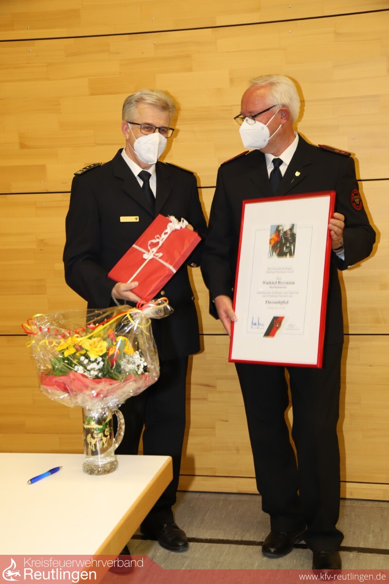 Winfried Herrmann wurde nach 44 Jahren aktivem Feuerwehrdienst aus der Einsatzabteilung verabschiedet und zum Ehrenmitglied der Feuerwehr Reutlingen ernannt.