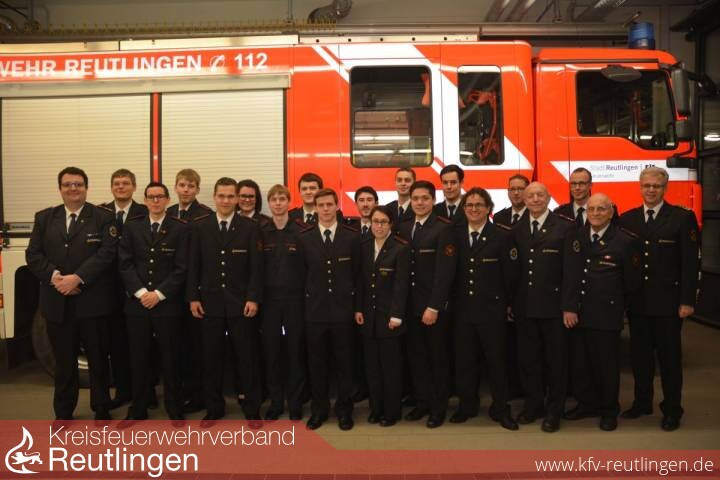 Für langjährige Dienstzugehörigkeit bei der Feuerwehr Reutlingen wurden geehrt: Joachim Stiegele (15 Jahre), Christoph Haas, Aledin Hodzic (beide 20 Jahre), Michael Beck, Andreas Magdalinski (beide 25 Jahre), Christian Wittel (30 Jahre), Robert Almer, Roland Haid (beide 50 Jahre), Eberhard Krohmer (55 Jahre), Karl-Heinz Rau (60 Jahre), Werner Böbel, Walter Weiblen (beide 65 Jahre).