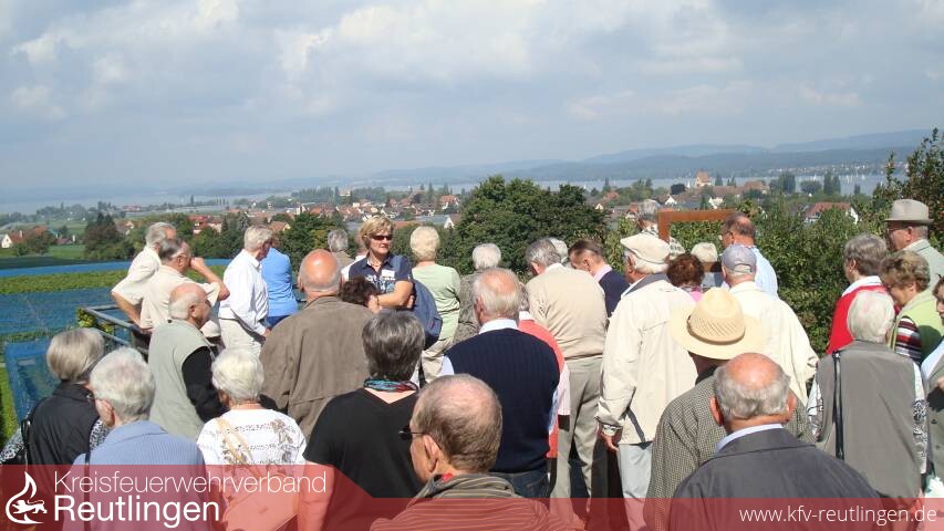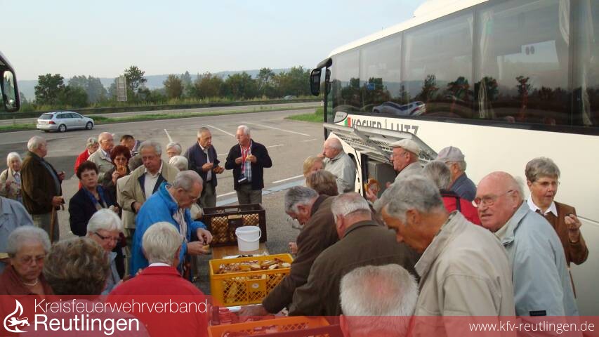Drei Omnibusse trafen sich am vergangenen Samstag nach dem „Einsammeln“ der 147 Angehörigen der Reutlinger Feuerwehr-Altersabteilung aus den zwölf Teilgemeinden und Stadtmitte zum Ausflug mit Ziel Insel Reichenau und Konstanz auf dem Reutlinger ZOB. Nach dem Morgengruß des Organisators und Vorsitzenden der Altersgruppe Walter Greiner führte die Fahrt mit Zwischenstopp und Frühstück bei der Raststätte Neckarburg auf die Insel Reichenau im Bodensee.