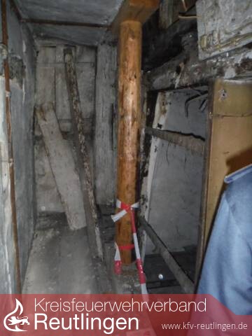 Die Baufachberater und Bauingenieure Adrian Röhrle, Dirk Mettenberger, Hartmut Möck und Michael Reitter der Berufsfeuerwehr konnten in der vergangenen Woche von Dipl.-Ing. (FH) Paul Gonser in das statische System der Häuserzeile in der Oberamteistraße eingewiesen werden. Herr Gonser erläuterte hierbei auch die vorhandenen Gebäudeschäden, deren Auswirkungen und die am Objekt durchgeführten und weiter geplanten Sicherungsmaßnahmen.