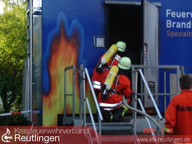 Hier konnten die Feuerwehrangehörigen eine sehr realitätsnahe Übung erleben. Die Vorgehensweise beim Türöffnen wurde ebenso geübt, wie der korrekte Zugang in einen verrauchten und heißen Raum sowie das Ablöschen brennender Gegenständ. Nicht zuletzt ist theoretischen und praktischen Teil besprochen worden, wie dem Flash-over entgegen zu wirken ist. Positiv hervorgehoben seitens der Feuerwehrangehörigen, dass alle Übungsteile mit der Sicherheit geübt werden konnten, die in einem Einsatz nicht gegeben ist.