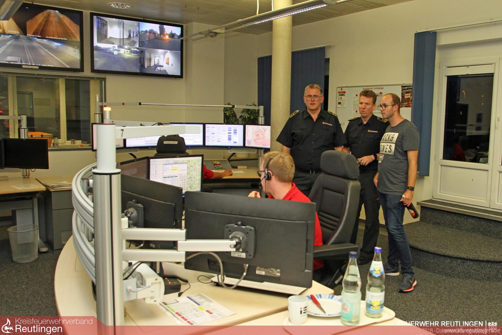Zum Abschluss der Sommertour bei der Feuerwehr Reutlingen ging es in die Leitstelle. Hier konnte sich der Bundestagsabgeornete mit der Technik und der Arbeitsweise in der Leitstelle Reutlingen vertraut machen und die Bearbeitung der eingehenden Notrufe aufmerksam beobachten. Er zeigte sich sichtlich beeindruckt von der hohen Vernetzung der EDV-Systeme und der daraus resultierende Nutzen für die Bevölkerung.