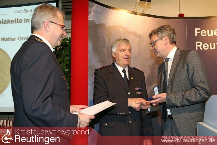 Anlässlich der Hauptversammlung der Feuerwehr Reutlingen wurde der Leiter der Altersabteilung, Oberbrandmeister a.D. Walter Greiner aus seinem Amt verabschiedet und mit der der Ehrenplakette in Gold der Feuerwehr Reutlingen ausgezeichnet.