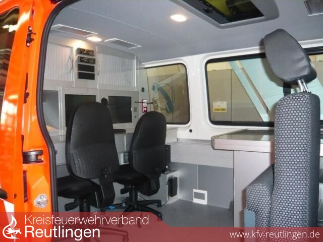 Um der Einsatzleitung auch im täglichen Einsatz die notwendigen Unterlagen bereitzustellen und um dem Führungsassistenten den notwendigen Arbeitsraum zur Verfügung stellen zu können, wurde ein Kastenwagen gewählt.
