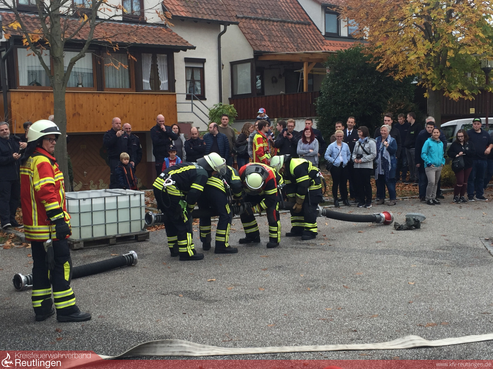 Wir bedanken uns an dieser Stelle nochmals ganz herzlich bei den Feuerwehren Dettingen, Pliezhausen, Sonnenbühl und Wannweil, die uns mit Fahrzeugen für die Ausbildung unterstützt haben. Vielen Dank auch der Feuerwehr Reutlingen für die Vorstellung der integrierten Leitstelle und der dortigen Sonderfahrzeuge.