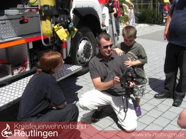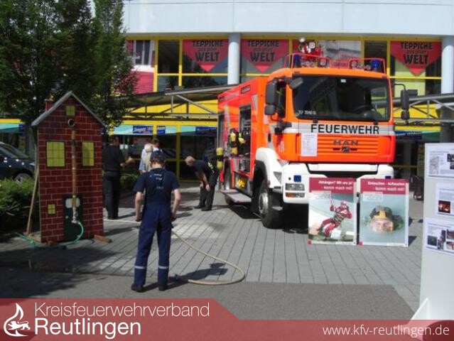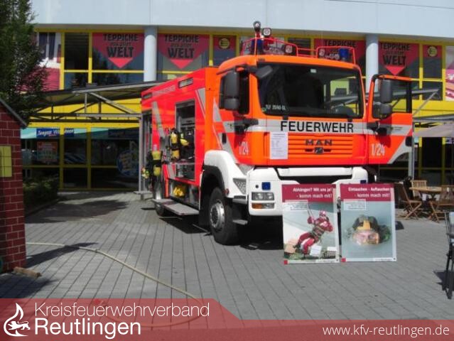 Was lag daher näher, dass die Reutlinger Feuerwehr an einem Informationsstand anlässlich der Veranstaltung "Baden-Württemberg schafft" über die Laufbahnen bei der Berufsfeuerwehr und bei den Freiw. Feuerwehrabteilungen auf dem Parkplatz beim Braun - Möbel-Center informierte.