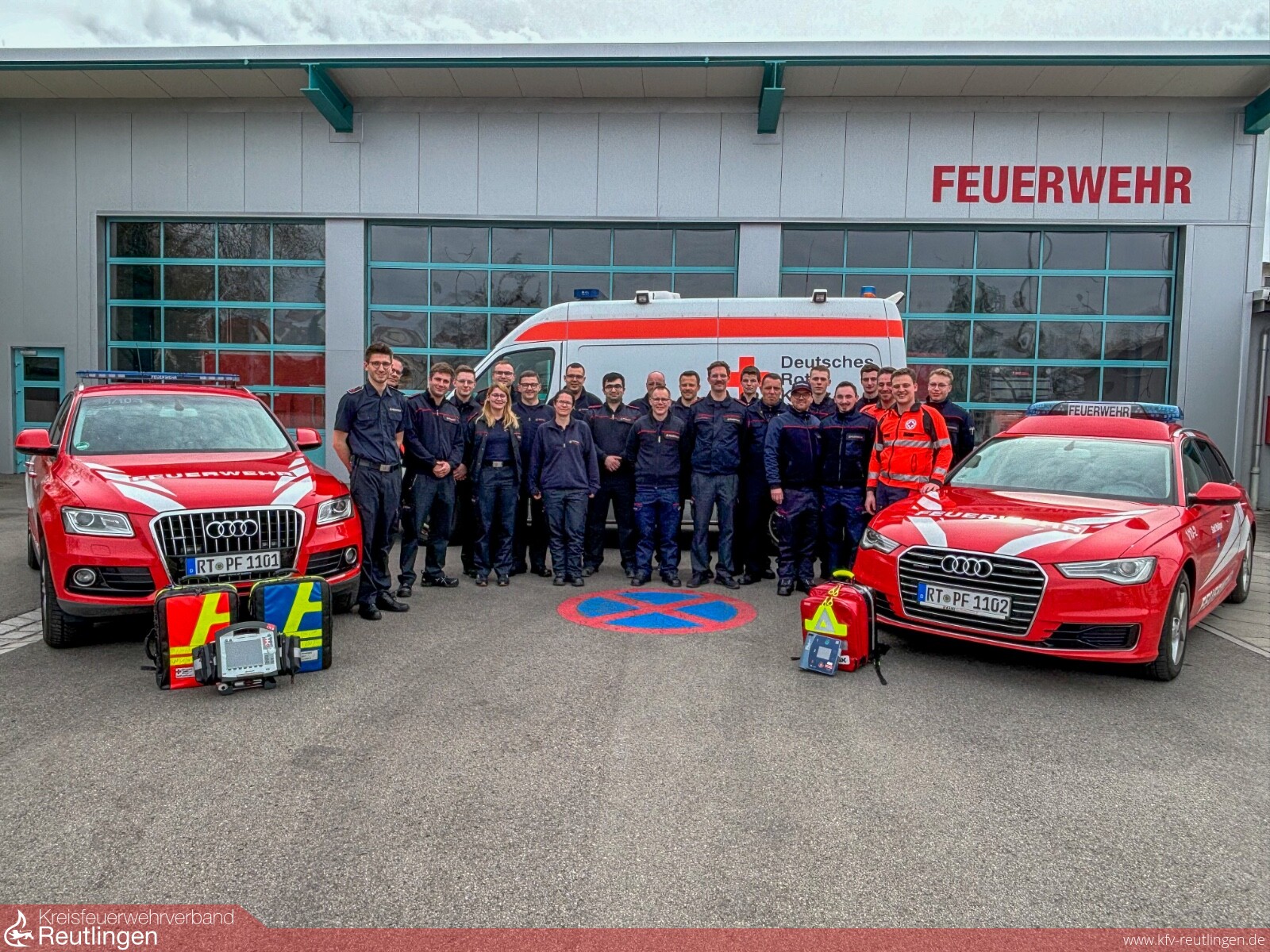Um diesen wichtigen Bereich weiter zu festigen und zu vertiefen, sowie die Einsatzkräfte weiter auszubilden, fand im Feuerwehrhaus in Pfullingen an mehreren Wochenenden eine über 80-stündige „First Responder Ausbildung“ in Zusammenarbeit mit der Rettungsdienstschule „mobile medic“ aus Wendlingen statt. Die Ausbildung konzentrierte sich insbesondere auf das strukturierte Untersuchen von Patienten und die Einschätzung, ob und welche akuten Maßnahmen erforderlich sind, um kritisch erkrankte oder verletzte Patienten bis zum Eintreffen des Rettungsdienstes optimal zu versorgen.