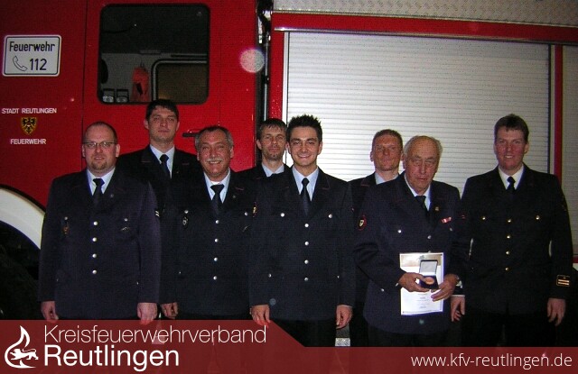 Eugen Keppler, der insgesamt über 60 Jahr in der Feuerwehr tätig war, erhielt für seine vielfältigen Aktivitäten in der Altersabteilung die Ehrenplakette in Bronze.