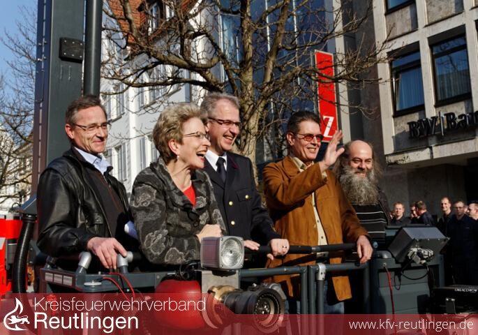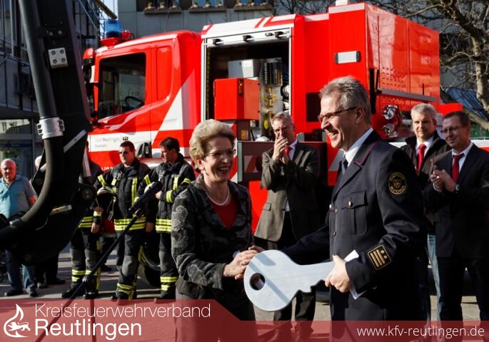 Seit 1996 ist das Fahrzeug im Bedarfsplan der Feuerwehr Reutlingen gestanden, jetzt ist es endlich angekommen. \"Wir können nun unsere Aufgaben besser erfüllen - mit weniger Risiko für die Mannschaften\", freut sich Herrmann einträchtig mit Oberbürgermeisterin Barbara Bosch.
