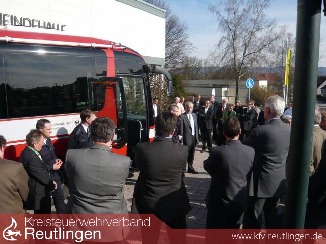 Festhalle Pliezhausen vor. Landrat Thomas Reumann begrüßte das Team der Reutlinger Feuerwehr und verdeutlichte die Wichtigkeit eines guten