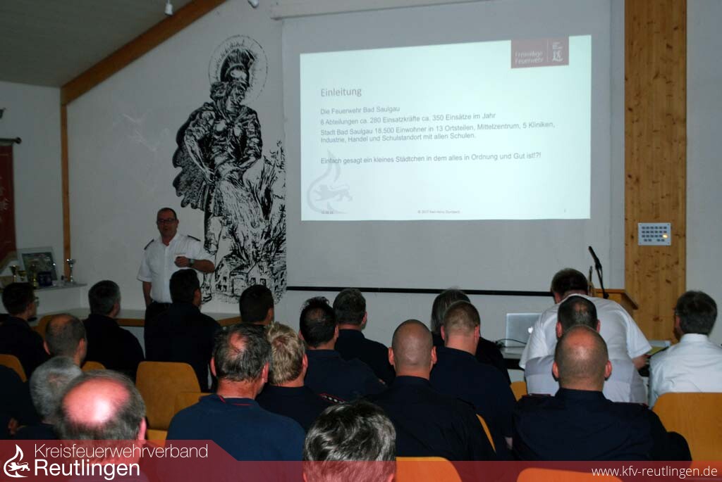 Der Kreisfeuerwehrverband Reutlingen nahm dies zum Anlass, eine Fortbildung unter dem Motto „Soziale Medien im Spannungsfeld zwischen Öffentlichkeitsarbeit und Einsätzen von Feuerwehr, Polizei und Hilfsorganisationen“ anzubieten. Vor rund 45 Interessierten Feuerwehrangehörigen sprachen Markus Medinger und Karl-Heinz Dumbeck zu diesem Thema.