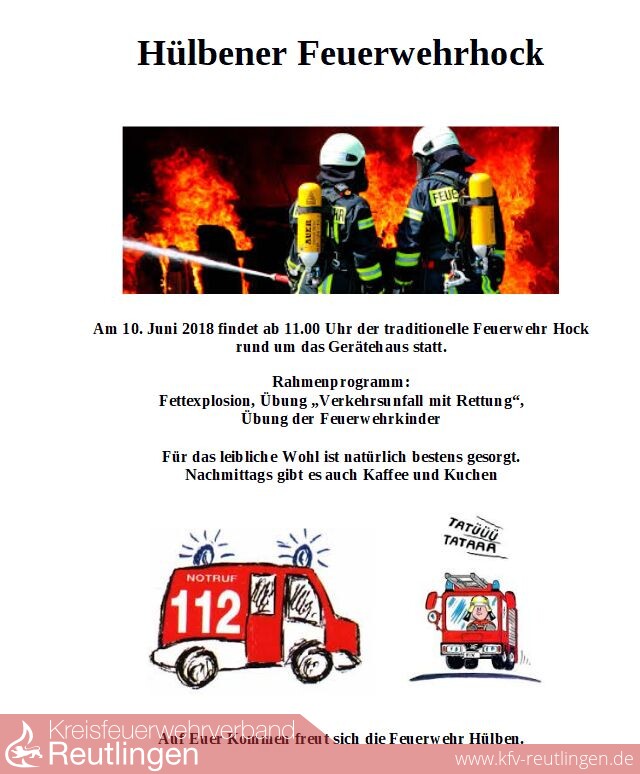 Herzliche Einladung zum Feuerwehrhock der FW Hülben