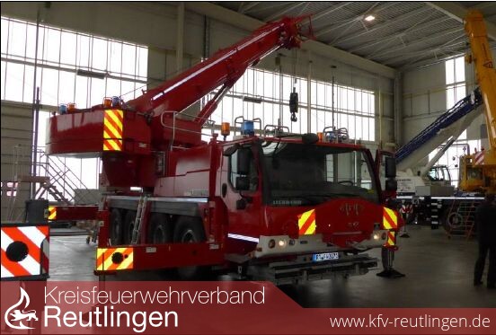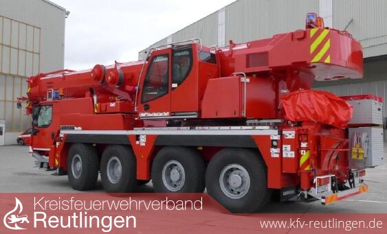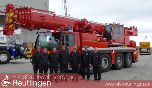 Vergangenen Donnerstag holte Feuerwehrkommandant Harald Herrmann zusammen mit dem Leiter Technik der Feuerwehr Reutlingen, Dipl. Ing. (FH) Martin Reicherter, den neuen Feuerwehrkran bei der Firma Liebherr in Ehingen ab.