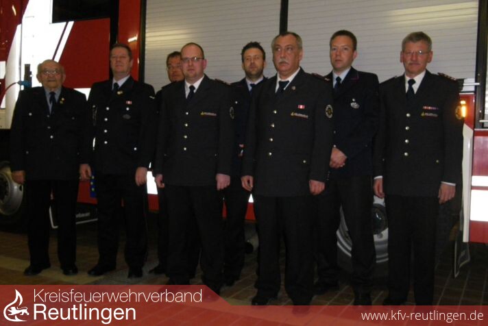 Mit der Feuerwehr-Ehrennadel der Stadt Reutlingen konnten für 15 Jahre Feuerwehrzugehörigkeit David Preiss (Gönningen), für 20 Jahre Alexander Raichle (Degerschlacht) und Michael Werner (Gönningen) ausgezeichnet werden. Für 25-jährige Zugehörigkeit konnten Ralf Glaunsinger (Bronnweiler), Winfried Schanz (Gönningen), für 35-jährige Zugehörigkeit Michael Kirschbaum (Degerschlacht), für 40-jährige Zugehörigkeit Paul Baumann (Bronnweiler), Dieter Raichle (Degerschlacht) sowie für 45 Jahre Willi Walker (Degerschlacht) und Walter Lerch (Gönningen) geehrt werden.
