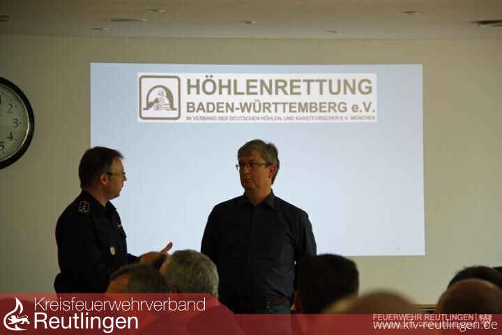 Ein Blick über den Tellerrand bot der Vortrag von Matthias Leyk zur Höhlenrettung in Baden-Württemberg, deren Einsatz- und Materialdepot sich seit 10 Jahren in der Feuerwache der Reutlinger Feuerwehr befindet. Matthias Leyk, 2. Vorsitzender und Einsatzleiter der Höhlenrettung Baden-Württemberg referierte zu den Besonderheiten Untertage, von verschiedenen Rettungsaktionen und deren besonderen Herausforderungen.
