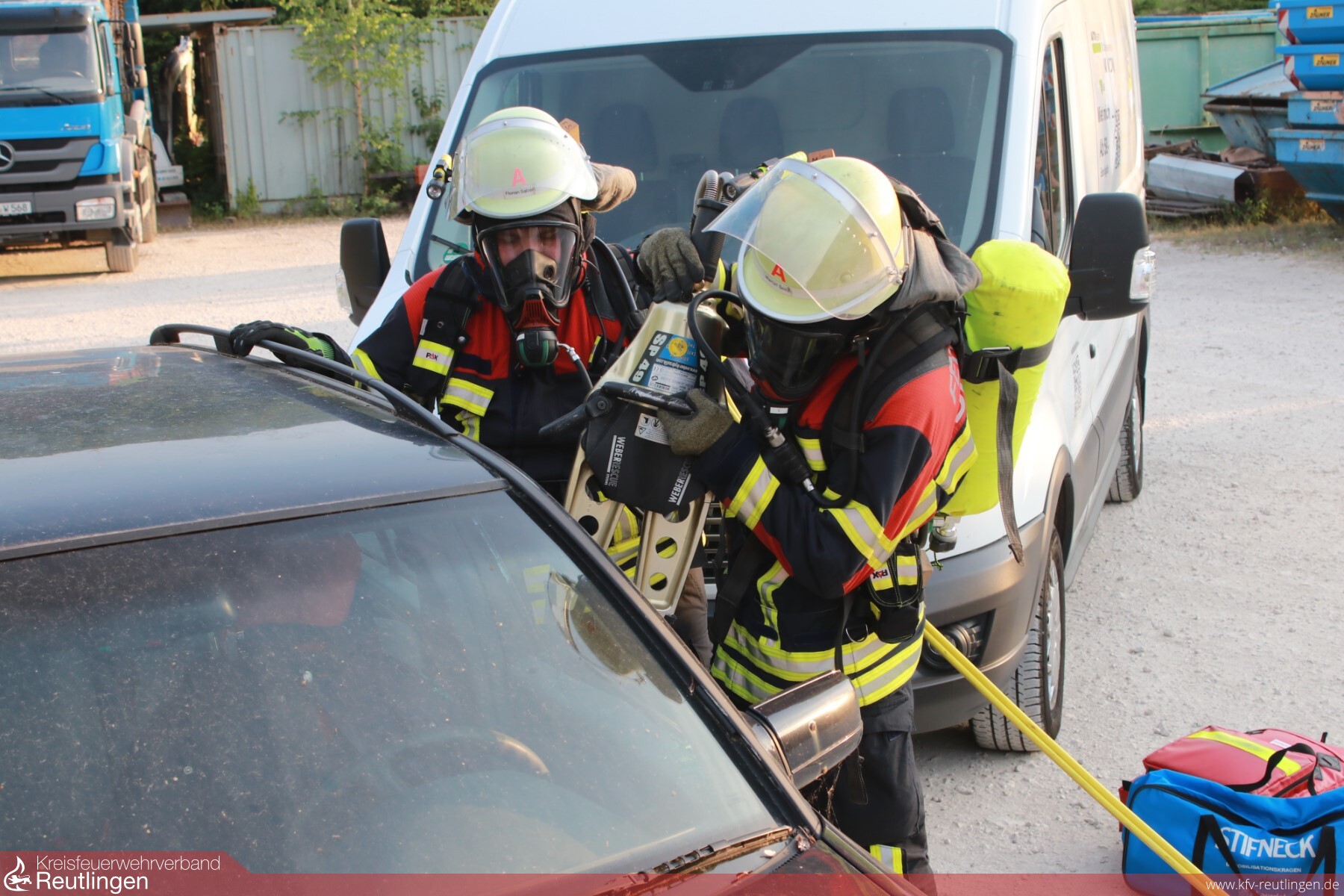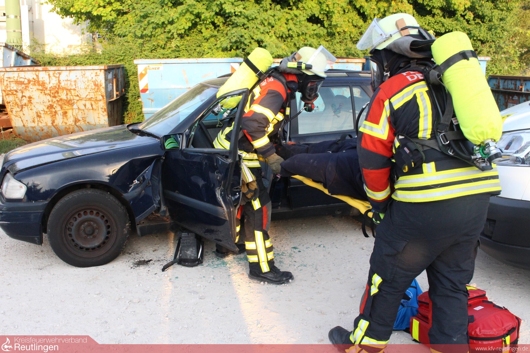 Von den zuerst eintreffenden Einsatzkräften erfolgte die Rettung des eingeklemmten Fahrers und eine weiträumige Absperrung der Unfallstelle. Zusätzlich wurden die Spezialkräfte der Feuerwehren Pfullingen und Dettingen nachgefordert.
