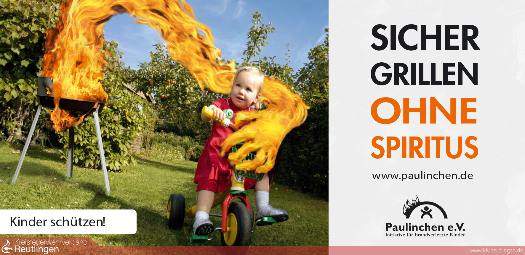 Brandschutzes e.V., weiß: „Die Einsätze bei Grillunfällen mit schwerstverletzten Kindern sind auch für unsere Einsatzkräfte sehr belastend. Es sollte ein Verbot für den Verkauf von Spiritus in Zusammenhang mit Grillutensilien geben! Wir können die Forderung von Paulinchen e.V. nur unterstützen, Hände weg vom Spiritus beim Grillen.“