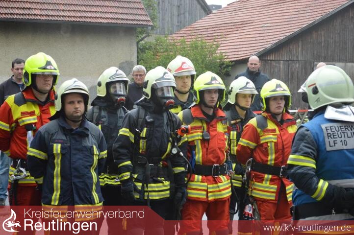 Hier zeigte sich einmal mehr die Verbundenheit zwischen den Feuerwehren: Aus Engstingen, Hayingen, Grafenberg, Laichingen, Riederich, Römerstein, Pliezhausen, Sonnenbühl, Trochtelfingen, St. Johann, Metzingen, Gomadingen, Dettingen, Schelklingen, Eningen, Hohenstein, Bad Urach, Zwiefalten, Tettnang, Mehrstetten, Pfullingen, Lichtenstein und Grabenstetten marschierten oder fuhren Abordnungen im Umzug mit. Zum Teil mit ganz altem Gerät, das die Entwicklung der Feuerwehr eindrücklich vor Augen führte.