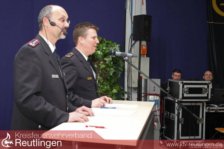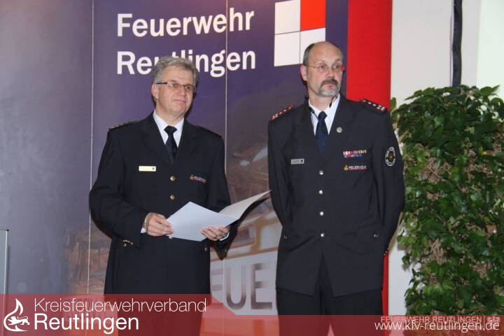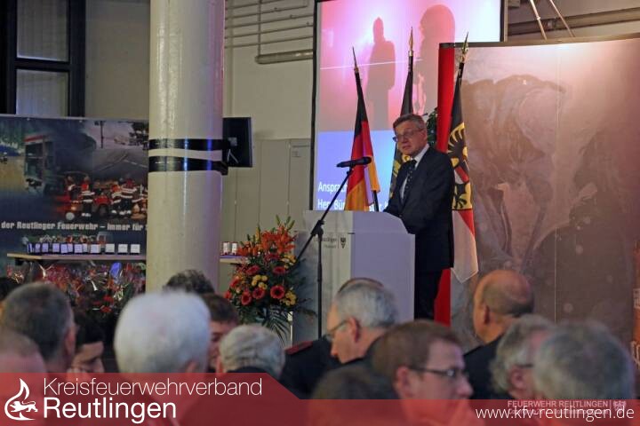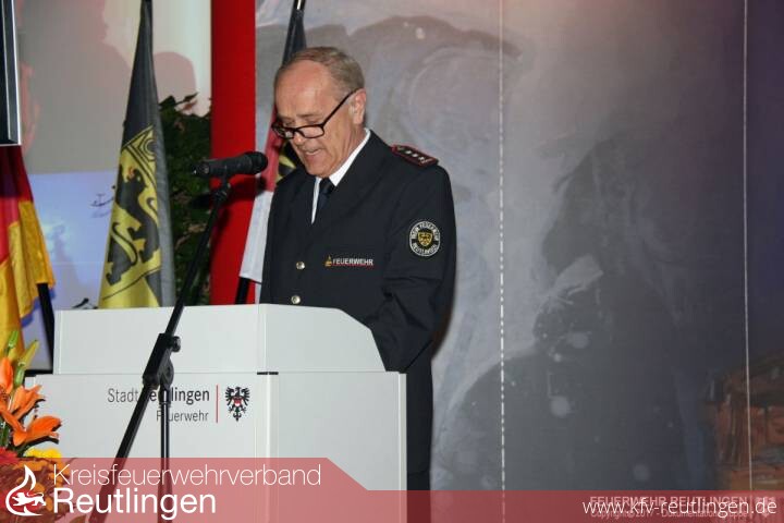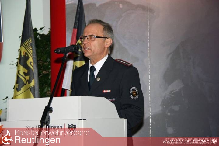 Grußworte zum Abschluss der Versammlung sprachen der Kreisbrandmeister Wolfram Auch und der Kreisfeuerwehrverbandsvorsitzende Gunter Hespeler. Beide sprachen der Reutlinger Feuerwehr Dank und Anerkennung aus.