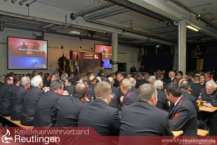 Mit Eindrücken und Bildern des vergangenen Jahres begann die Hauptversammlung der Reutlinger Feuerwehr am vergangenen Freitag in der Feuerwache in der Hauffstraße. In der voll besetzten Fahrzeughalle konnten die beiden Kommandanten – Stellvertreter Adrian Röhrle und Frank Wittel zahlreiche Gäste und Feuerwehrangehörige begrüßen, bevor dann Feuerwehrkommandant Harald Herrmann seinen Bericht für das vergangene Jahr 2016 vortrug.