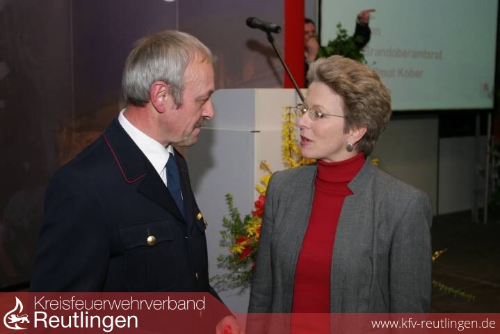 Landesbranddirektor Hermann Schröder zeichnete Helmut Kober im Auftrag des Innenministers mit dem Feuerwehr - Ehrenzeichen der Sonderstufe des Landes Baden-Württemberg aus. Die Bedeutung dieser Auszeichnung stellte Schröder heraus. Bei 125.000 Feuerwehrangehörigen in Baden-Württemberg wird diese Auszeichnung nur1-2 mal pro Jahr vergeben.