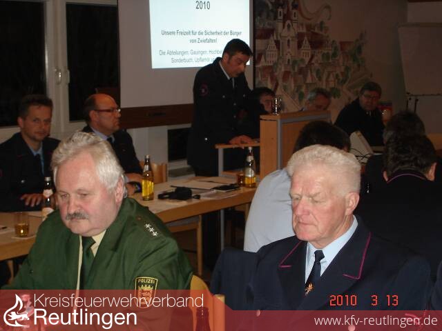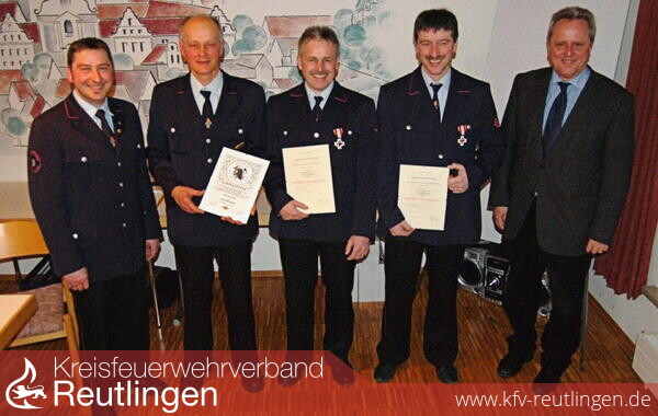 Seit 25 Jahren opfern Bruno Galster (Abteilung Hochberg) und Franz Koch (Abteilung Gauingen) ihre Freizeit für die Sicherheit der Bürger. Hierfür wurden sie vom Bürgermeister mit dem Ehrenabzeichen in Silber und einer Urkunde geehrt. Einen Geschenkkorb und Urkunde gab es für Karl Engst, er war 27 Jahre lang Kommandant der Abteilung Upflamör und kann sich nun Ehrenkommandant nennen. Bei einem aus dem Gemeindesäckel gesponserten Vesper wurde im Anschluss die Feuerwehrkameradschaft gepflegt.