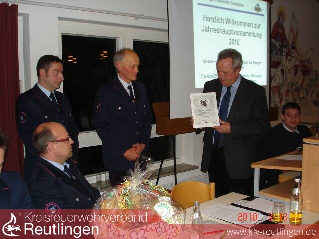 Mehrere Einsätze, viele Übungen, Fortbildungen, das neue Löschgruppenfahrzeug vom Typ LF 10/6 und gut geordnete Verhältnisse in der 106 Mitglieder zählenden Feuerwehr, dazu ein klares Bekenntnis der Gemeinde zur schnellen Truppe, lieferten den Stoff für eine harmonische Hauptversammlung. Zahlreiche Feuerwehrkameraden, unter ihnen Gunter Hespeler, stellvertretender Verbandsvorsitzender vom KFZ Reutlingen, Bürgermeister Hubertus Jörg Riedlinger, die Vertreter der Polizei, Eckhard Müller und Elmar Hausmann, Oskar Schnitzer und seinen Nachfolger Armin Pangerl von der Werksfeuerwehr der Münsterklinik, Ehrenmitglieder und Vorsitzende der örtlichen Vereine konnte Markus Ott begrüßen. Und er nutzte die Gelegenheit, allen Anwesenden für die gute Zusammenarbeit im vergangenen Jahr zu danken.
