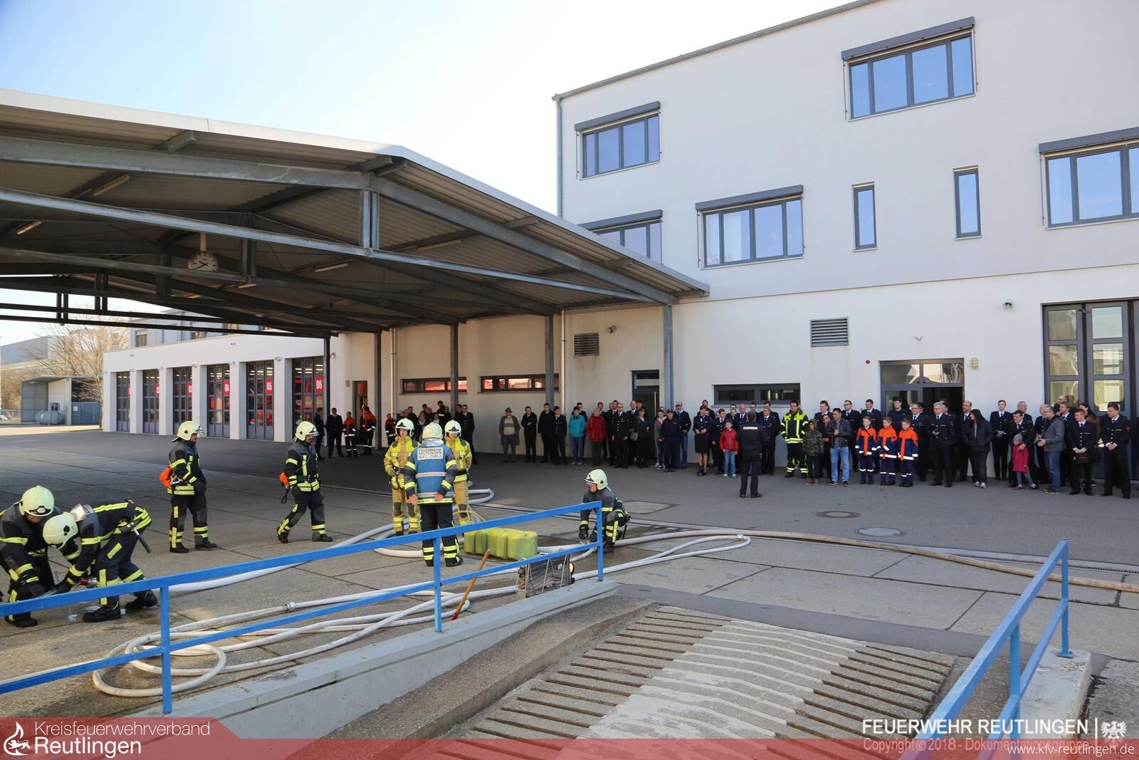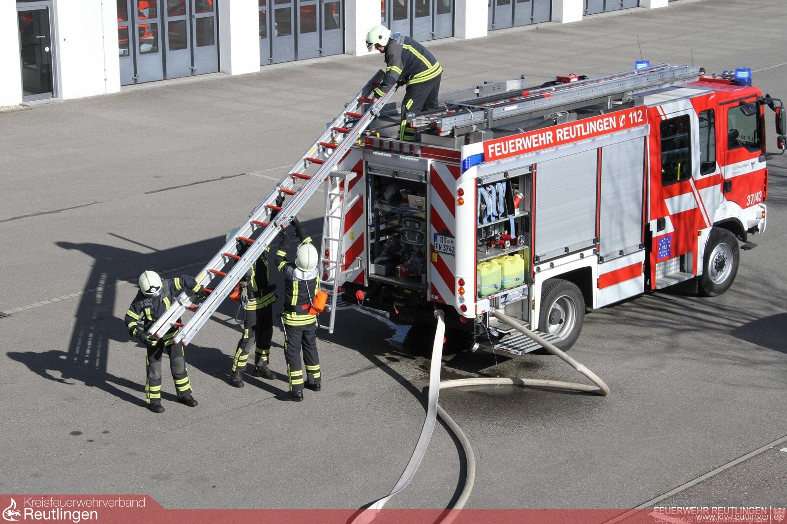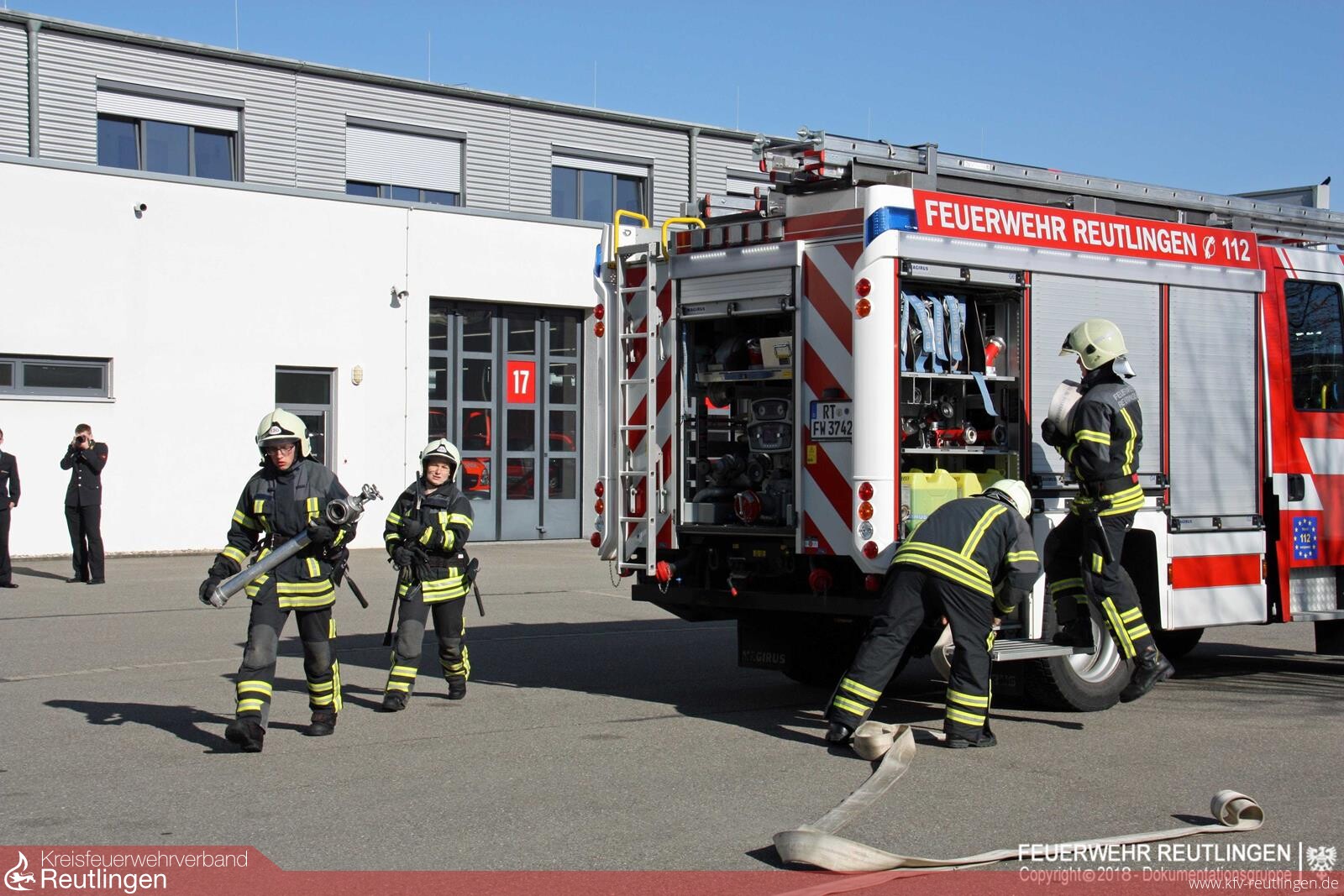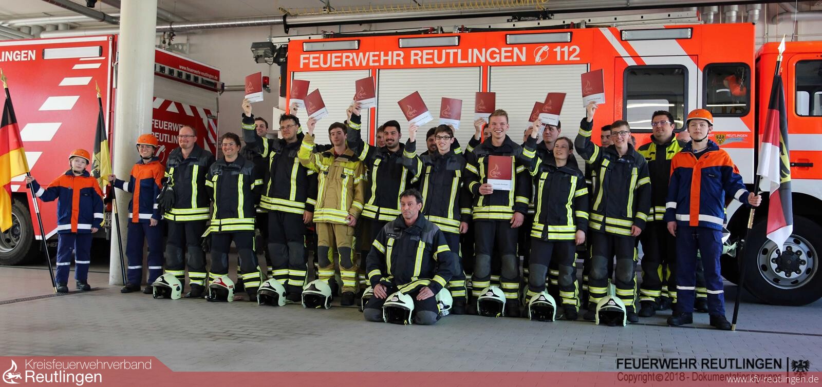 Bevor die jungen Feuerwehrangehörigen jedoch die Lehrgangsurkunden in Empfang nehmen durften, mussten sie ihr Können bei der Abschlussprüfung auf der Reutlinger Feuerwache unter Beweis stellen. Nach einer theoretischen Prüfung hatte der Feuerwehrnachwuchs unter den strengen Blicken der anwesenden Feuerwehrführungskräfte sowie der Eltern und Freunde einen Fahrzeugbrand in einer Garage mit Personenrettung sowie einen Wohnungsbrand im Obergeschoss zu bewältigen.