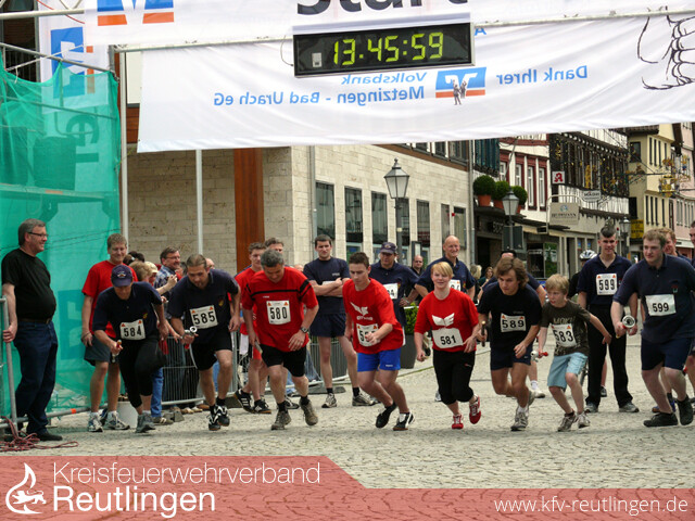 Die 8 angemeldeten Mannschaften aus Dettingen, Pfullingen (3 Mannschaften), Hengen, Bad Urach (2 Mannschaften) und der Jugendfeuerwehr Bad Urach, lieferten sich ein packendes Rennen, die Strecke die zu bewältigen war, führte durch die komplette Uracher Innenstadt und war 800 Meter lang. Eine Mannschaft bestand aus drei Läufern wobei jeder einmal die Strecke umrunden musste.