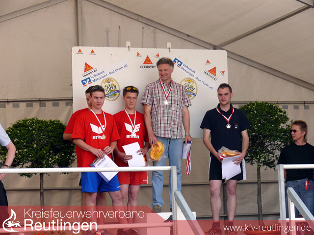 Diese Konstellation veränderte sich bis zur dritten Runde nicht gravierend. Die Feuerwehr Dettingen mit Schlussläufer Kommandant Schäfer kam mit einem klaren Vorsprung ins Ziel. Den zweiten Platz belegte eine der Mannschaften aus Pfullingen, doch dahinter wurde es nochmals spannend. Schlussläufer Claus Geigle der Mannschaft Bad Urach U30, zündete auf den letzten 200 Meter den Turbo und sicherte sich damit vor der Jugendfeuerwehr und der Mannschaft Bad Urach Ü30 den dritten Platz.