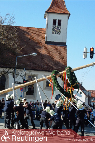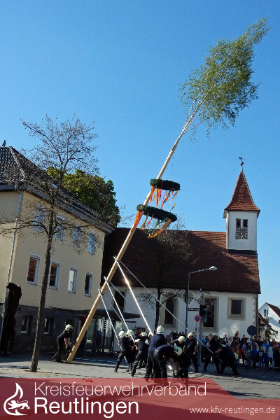 Am frühen Sonntag Abend haben die Abteilungen der Freiwilligen Feuerwehr in Betzingen , Ohmenhausen, Degerschlacht, Oferdingen, und Gönningen um traditionellen Maibaum-Aufstellen eingeladen. Mit großem Spektakel und viel Muskelkraft wurden die Maibaume in den Reutlinger Stadtbezirken aufgestellt.
