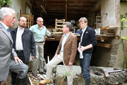 Ministerpräsident Günther H. Oettinger bei einem Besuch in der Unwetterregion