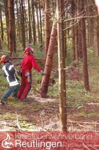 Am Samstagnachmittag durften wir dann endlich das erlernte in die Praxis umsetzen. Dabei fuhren wir in den Florianwald und durften dort, die für uns eigens markierten Bäume durch verschiedene Fälltechniken zu Fall bringen. Schnell wurde uns klar, welchen Gefahren man bei Holzfällarbeiten ausgesetzt ist.