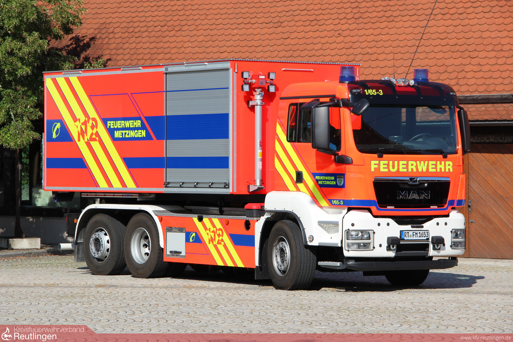 Den Zuschlag für das Fahrgestell des neuen Wechselladerfahrzeugs bekam die Firma MAN aus München mit einem TGS 26.440. Der 26-Tonner ist damit das größte Fahrzeug im Fuhrpark der Metzinger Feuerwehr. Angetrieben wird das Fahrzeug von einem Dieselmotor mit einer Leistung von 440 PS. Für eine bessere Wendigkeit sorgt die Liftachse. Der Aufbau wurde von der Firma Neff mit einem Palfinger Abrollkipper Hakensystem gestaltet.