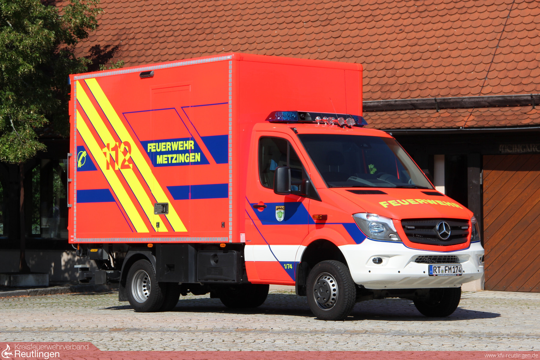 Die Feuerwehr Metzingen hat im Jahr 2017 nach einer nationalen Ausschreibung zwei neue Fahrzeuge von den Herstellern abgeholt. Zum einen wurde ein dreiachsiges Wechselladerfahrzeug (WLF) mit Liftachse beschafft. Bei der zweiten Neubeschaffung handelt es sich um einen Sprinter mit Kofferaufbau und Ladebordwand, der als Gerätewagen-Transport (GW-T) eingesetzt wird.