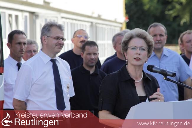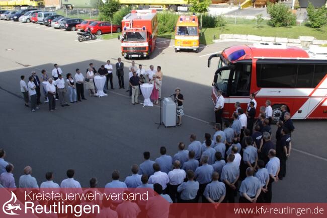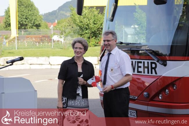 Oberbürgermeisterin Barbara Bosch konnte am Dienstagabend in der Anwesenheit von Vertretern des Gemeinderates, dem zuständigen Dezernenten des Landratsamtes, von Bürgermeistern des Landkreises, der Polizei, der Hilfsorganisationen und dem Bezirksbrandmeister einen neuen Einsatzleitwagen vom Typ ELW 2 an die Reutlinger Feuerwehr übergeben. Das Fahrzeug ersetzt einen seit über 20 Jahren im Dienst befindlichen ELW 2, dessen Technik veraltet ist. Das Fahrgestell des alten ELW 2 wird als Gerätewagen-Messtechnik weiterverwendet und ersetzt den 28 Jahre alten Gerätewagen-Messtechnik.