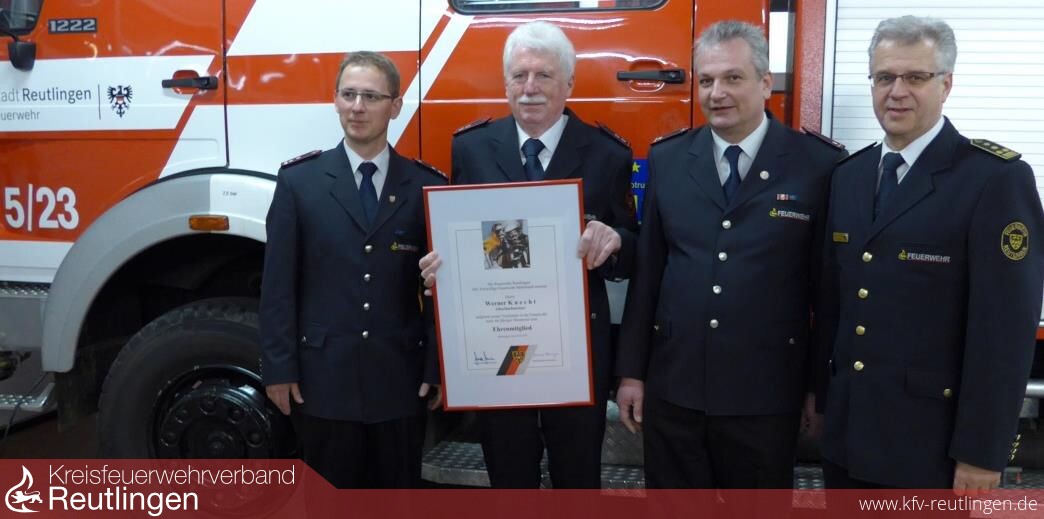 Auf Antrag der Abteilung FF Mittelstadt hat der Feuerwehrausschuss dem Antrag auf Ehrenmitgliedschaft einstimmig zugestimmt. Feuerwehrkommandant Harald Herrmann konnte im Rahmen der Abteilungsversammlung die Ernennung vornehmen. Die Feuerwehr Reutlingen gratuliert Werner Knecht zur Ehrenmitgliedschaft.