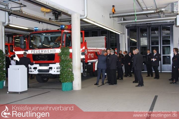 Zu Beginn seiner Ansprache verdeutlichte der Bürgermeister die Wichtigkeit der Reutlinger Feuerwehr für das Gemeinwohl. Eine besondere Funktion hätte dabei die Abteilung Freiwillige Feuerwehr Stadtmitte inne, die insbesondere bei Großschadenslagen die Logistik im ganzen Stadtgebiet verantwortet. Mit der Indienststellung des neuen GW-T steht der Abteilung neben den Wechselladerfahrzeugen mit Abrollbehältern ein universelles Transportfahrzeug mit Ladekran und Ladebordwand für auf Paletten und Gitterboxen verlastete Einsatzmittel zur Verfügung.