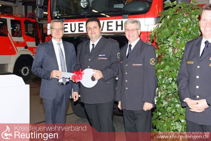 Bürgermeister Alexander Kreher konnte am Dienstag in der Reutlinger Feuerwache im Beisein zahlreicher Gäste einen neuen Gerätewagen – Transport, kurz GW-T, an die Abteilung Freiwillige Feuerwehr Stadtmitte übergeben. Gekauft wurde das neue Transport- und Logistikfahrzeug als Ersatzbeschaffung für ein mittlerweile 28 Jahre altes Fahrzeug, welches seit 1988 im Dienst der Feuerwehr stand und inzwischen technisch überholt und verbraucht war.