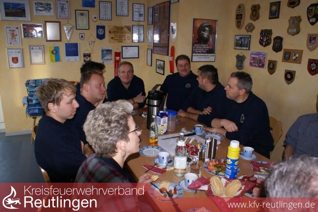 Bosch unterstrich, das hohe Ansehen der Reutlinger Feuerwehr im Rathaus, vor allem aber in der Bevölkerung. Zu dieser hohen Anerkennung trage jede einzelne Feuerwehrfrau und jeder Feuerwehrmann bei, die vor Ort hervorragende Arbeit leiste. Eine solche Gemeinschaftsleistung sei nur erreichbar, wenn alle an einem Strang ziehen und mehr als Dienst nach Vorschrift machen. Als kleines Dankeschön dafür und als Ausgleich für die entgangenen Weihnachtsfreuden überreichte sie den Einsatzkräften zwei Christstollen.