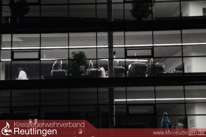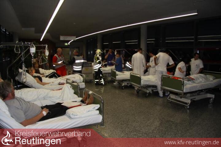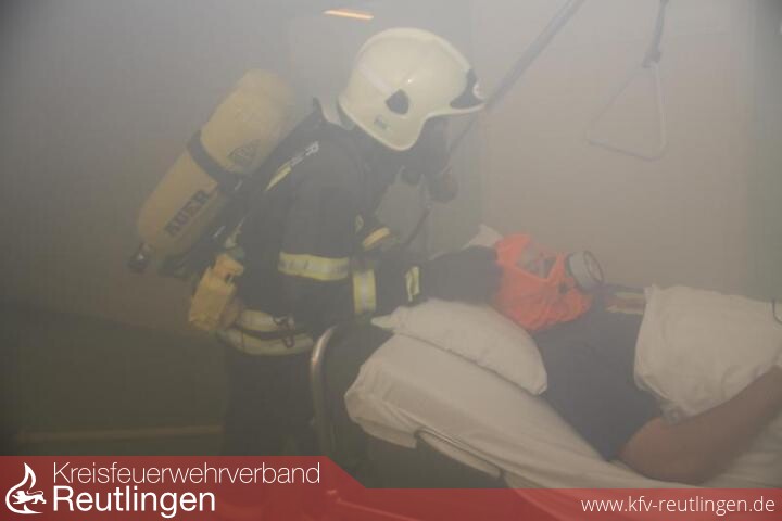 Gestern probten die Reutlinger Berufsfeuerwehr und die Freiwillige Feuerwehr den Ernstfall am Klinikum am Steinenberg. Zwei Löschzüge mit insgesamt 36 Feuerwehrmännern sowie 15 Führungskräfte waren im Einsatz. Unterstützt wurden die Löschmänner bei ihrer Großübung von Technik-Mitarbeitern der Klinik, von der Polizei, dem DRK, THW und von Pflegeschülern, die als Statisten für Realitätsnähe sorgten.