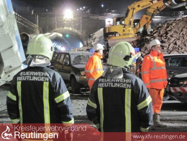 Die Aufgaben der Rettungswehr, beispielsweise die Personenrettung aus dem Tunnel, hat während der gesamten Arbeiten am Scheibengipfeltunnel die Feuerwehr Reutlingen als Vertragspartner der Max Bögl GmbH übernommen.