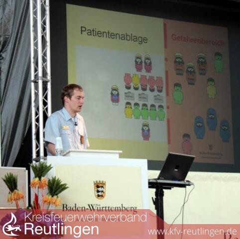 Was steckt hinter dem Begriff „Massenanfall von Verletzten/Erkrankten“? Wo besteht hier die Verknüpfung zur Feuerwehr? Diese Fragen wurden im zweiten Teil des Vortrages erläutert. Sehr schnell wurde ersichtlich, dass es sich hier nicht nur um ein reines Rettungsdienstthema handelt. „Unser Problem „Erkrankung/Verletzung“ ist noch lange nicht mit der Übergabe an den Rettungsdienst gelöst. Wenn wir Menschen retten gehört auch immer eine medizinische Versorgung vor Ort und der anschließende Transport dazu.“ so Christoph Slaby. Insbesondere bei der Raumordnung zeigte er immer wieder auf, an welchen Stellen es wichtig ist, Kräfte des Rettungs- und Sanitätsdienst zu berücksichtigen, um optimal Menschen zu retten. Ein grundsätzliches Verständnis der Einsatztaktik des Rettungsdienstes ist somit bei jedem Einsatzleiter erforderlich.