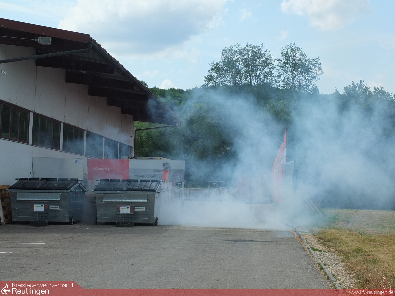 Ein angenommener Maschinenbrand in der Recycling-Halle verursachte eine starke Rauchentwicklung. Dieser Rauch drang über das Treppenhaus auch in das angrenzende Bürogebäude, so dass neben der Brandbekämpfung auch mehrere Personen von den Dächern gerettet werden mussten.