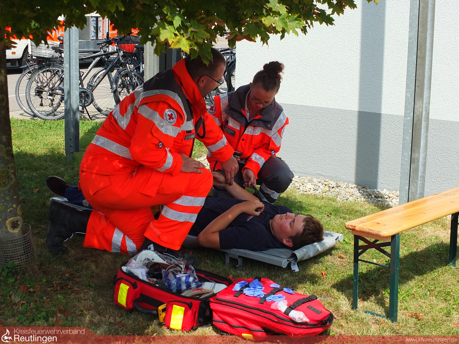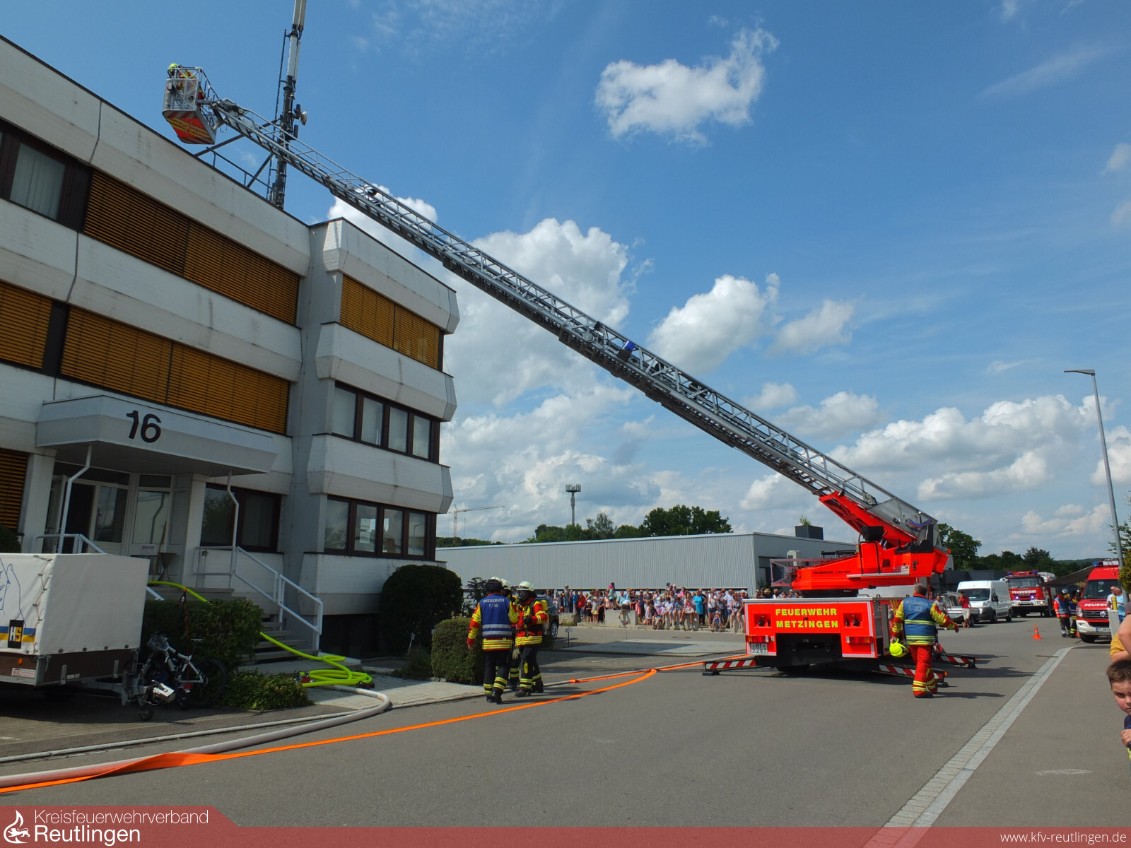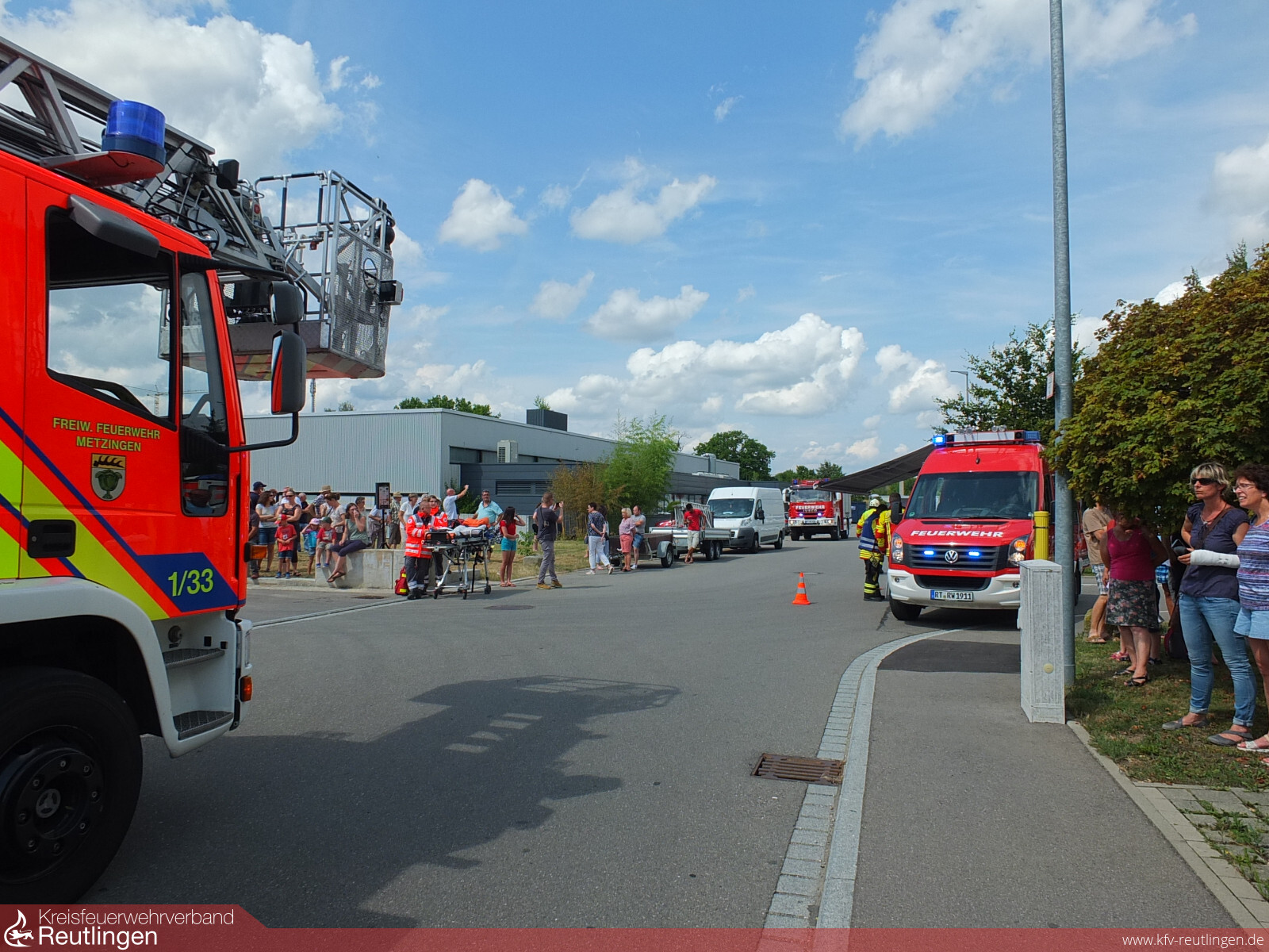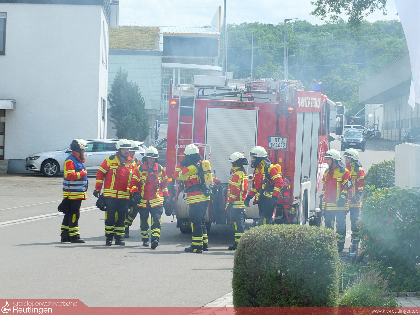 Rund 50 Einsatzkräfte der Feuerwehren Metzingen und Riederich sowie des DRK Ortsvereins Metzingen stellten eindrucksvoll unter Beweis, wie auch diese komplexe Lage in kurzer Zeit unter Kontrolle gebracht werden kann.
