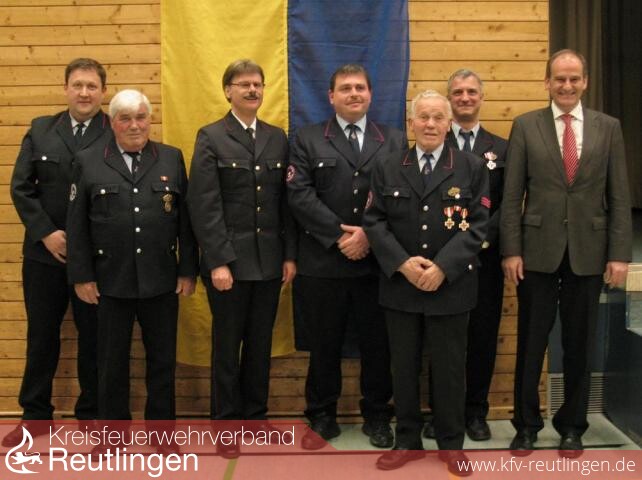 Hauptkommandant Marc Schneider und Kreisbrandmeister Wolfram Auch konnten zusammen mit Markus Ott, stellvertretender Vorsitzender des Kreisfeuerwehrverbands Reutlingen, abschließend Uwe Früh und Bernd Schöllkopf für 25 Jahre Einsatzbereitschaft für die Feuerwehr auszeichnen. Für 60 Jahre wurden Eugen Möck und Albert Ranz von der Gemeinde geehrt. (GEA)